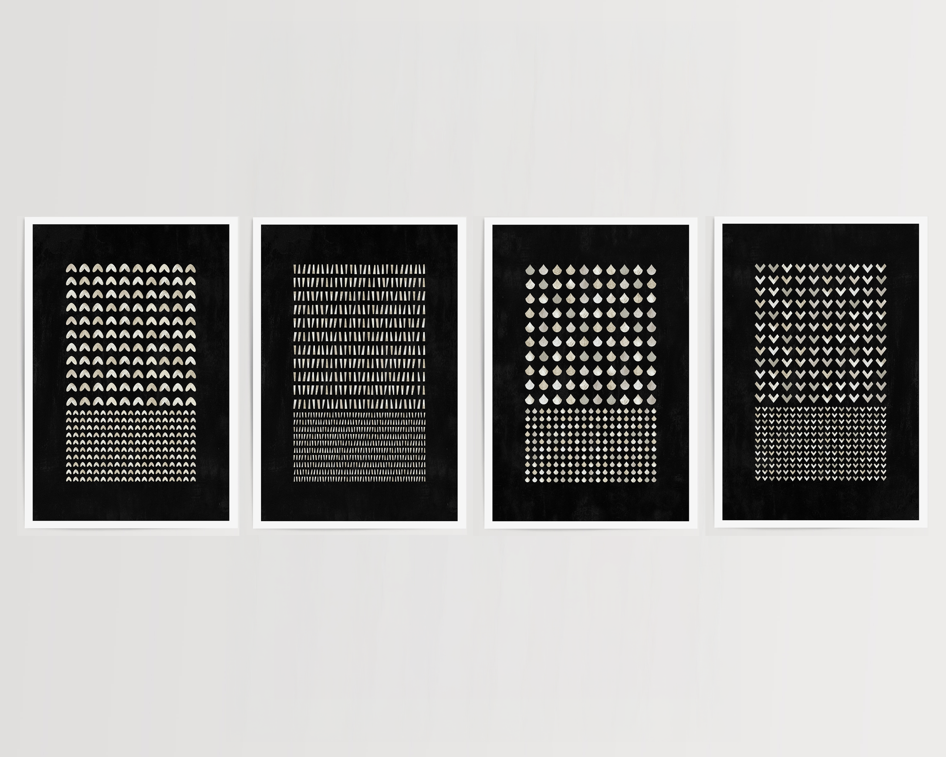 SET OF FOUR - GEOMETRIC BLACK ART PRINT