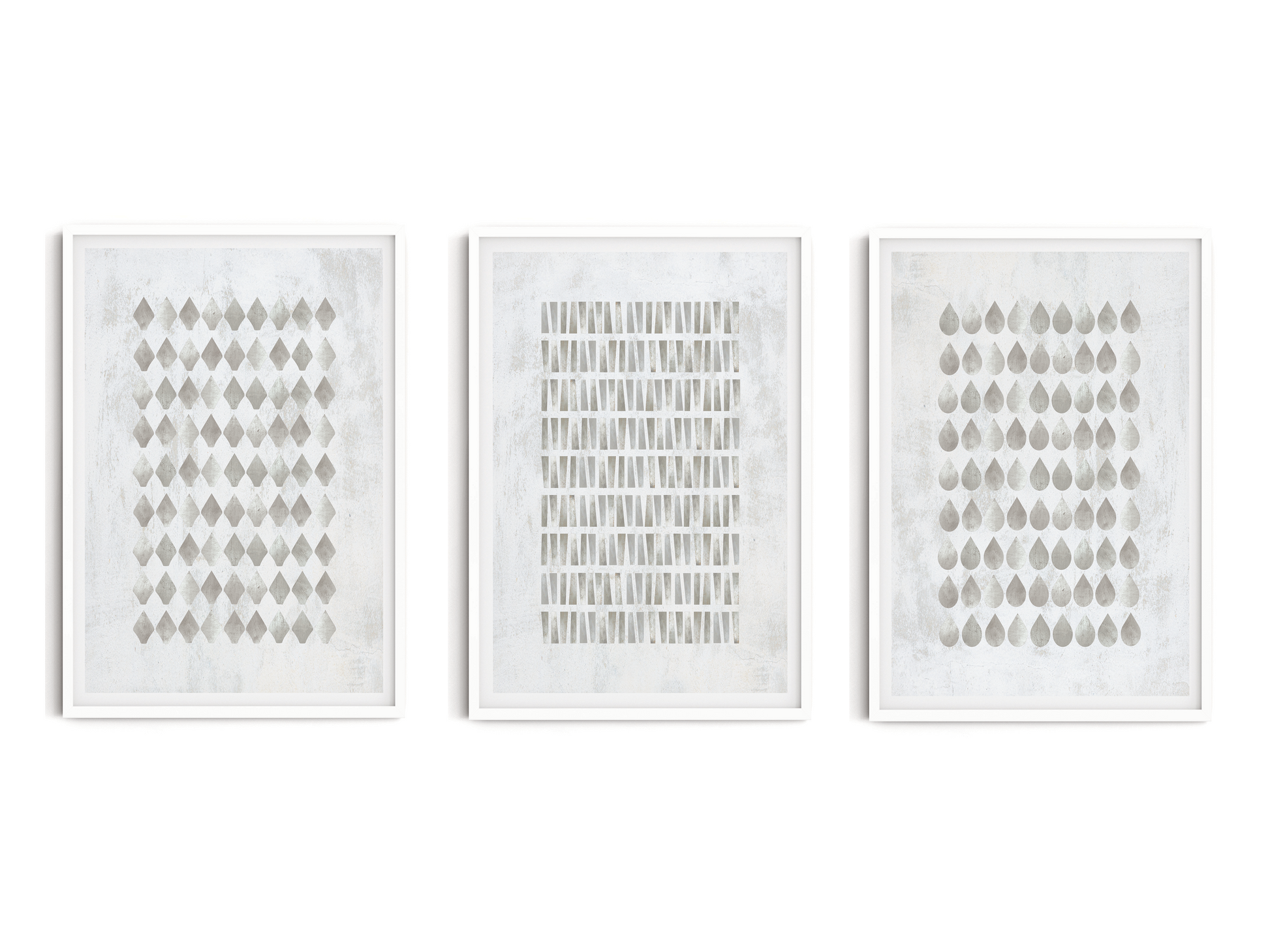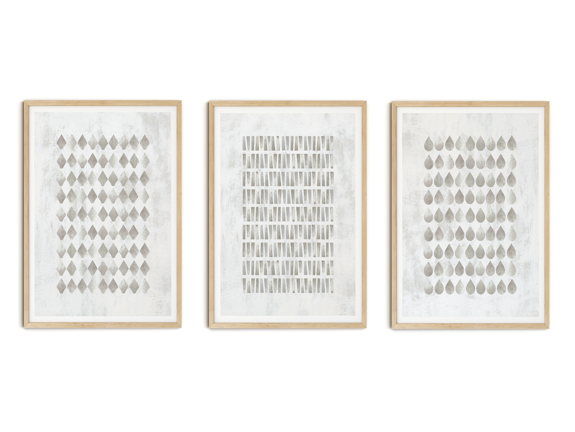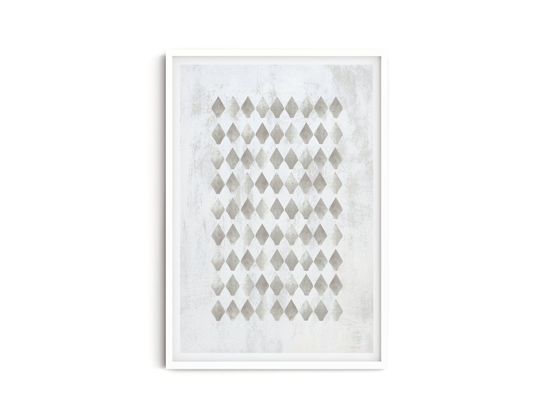 This combination plays with shape and subtle tone—clean forms like diamond and line set against fluid raindrop movement. This is a quote from Rimmy about the artwork inspiration.