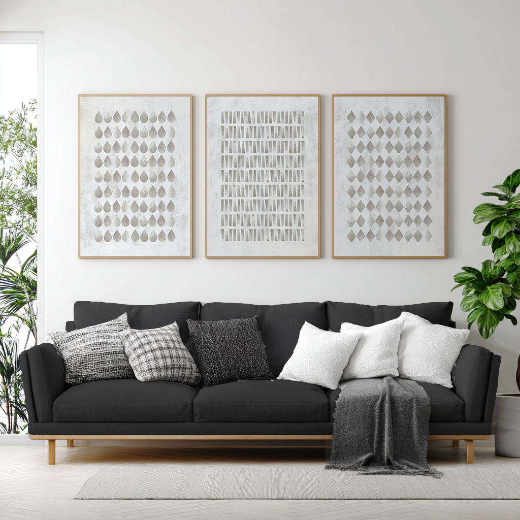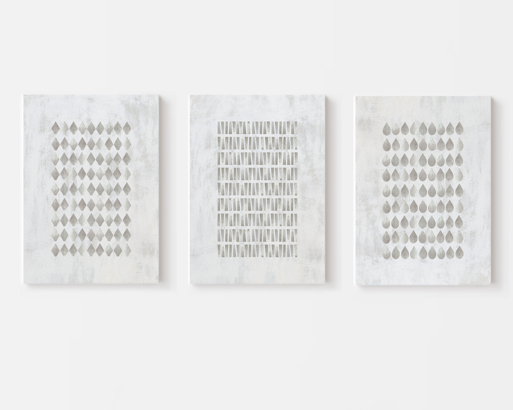 SET OF THREE - GEOMETRIC GREY CANVAS