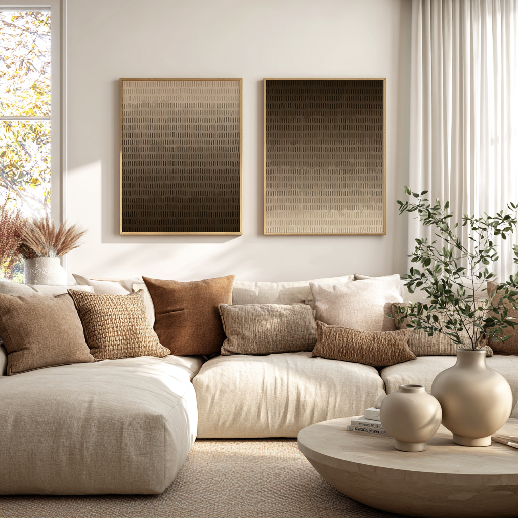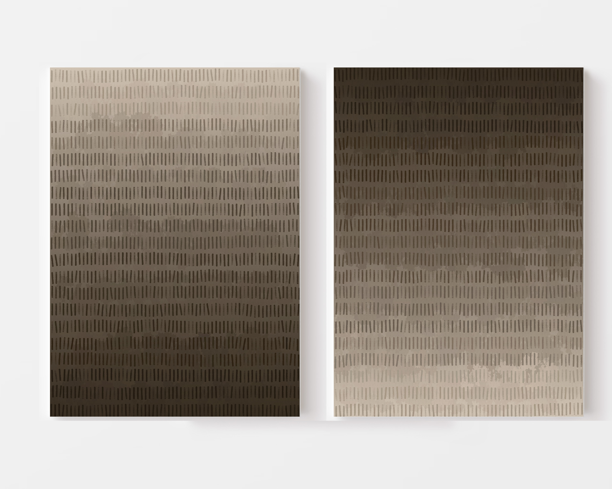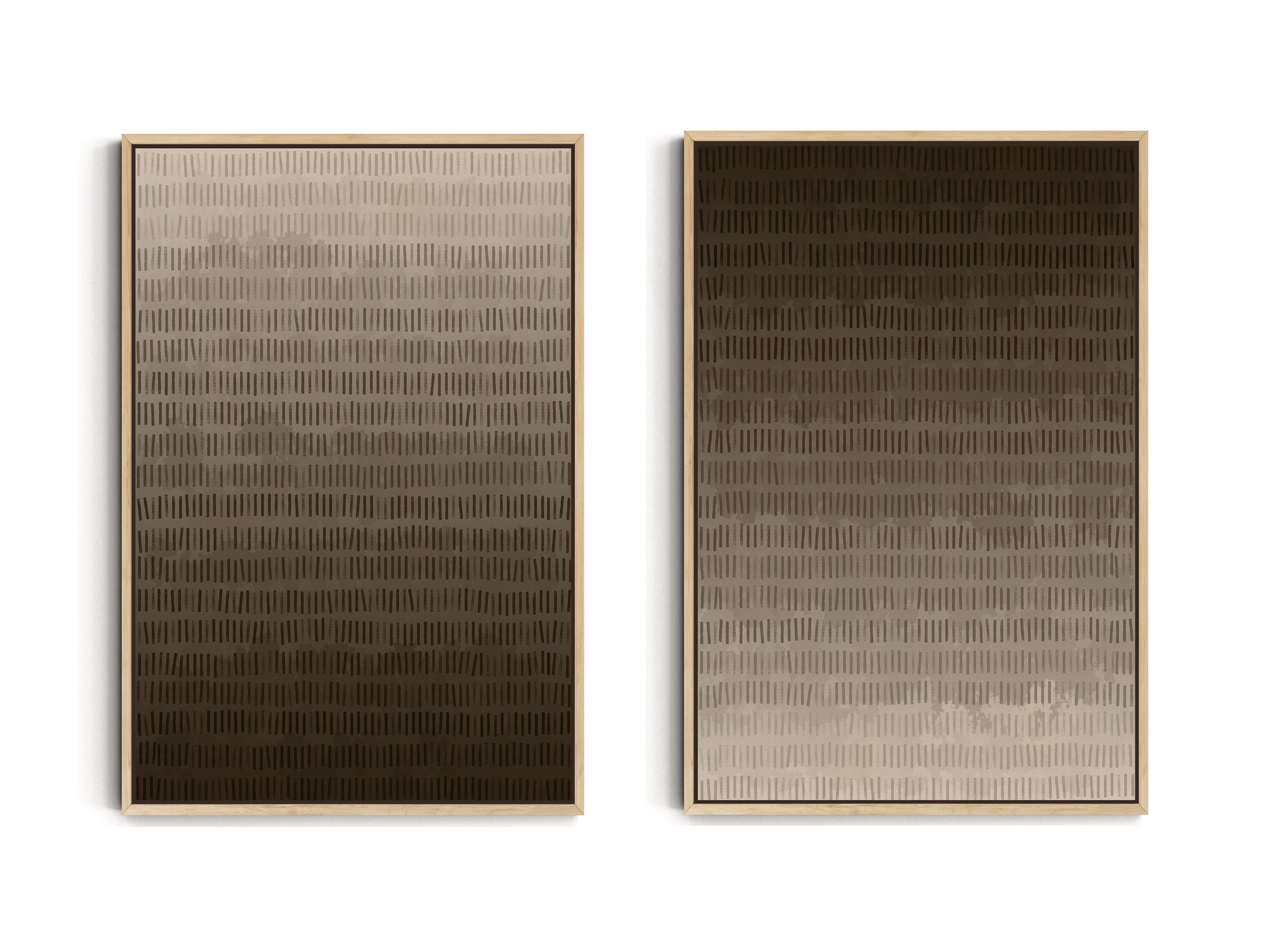 These pieces are a warm embrace—deep tones and gentle contrast like dusk settling over a familiar place. This is a quote from Rimmy about the artwork inspiration.