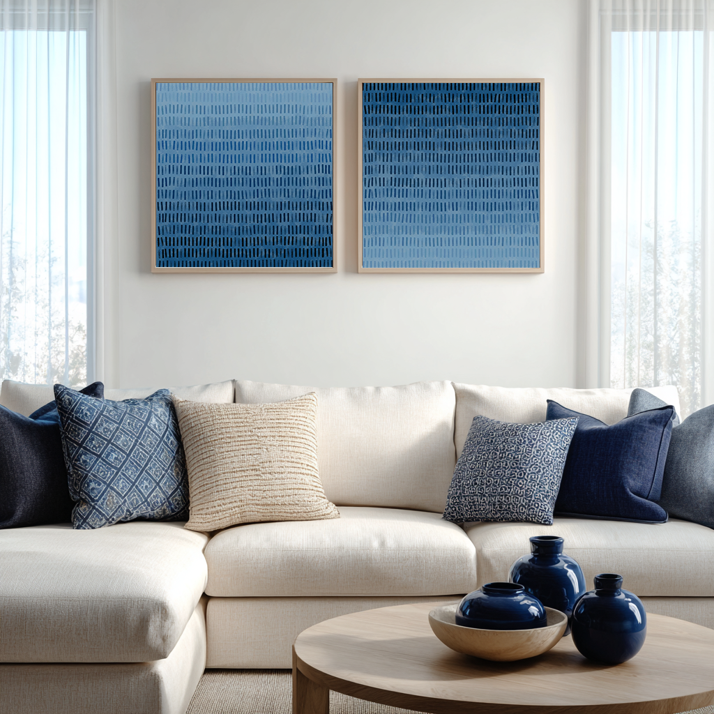 Squares for stillness; this pair brings quietude into shape—safe lines, soft edge, gentle comfort . This is a quote from Rimmy about the artwork inspiration.